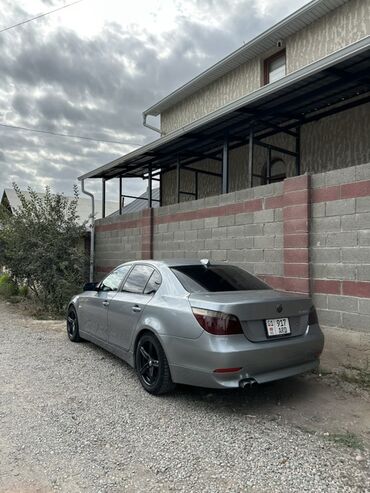 BMW 5 Series E60 530i, серебристый седан. Ключевые особенности: - Бензиновый 6‑цилиндровый двигатель 3.0 (модель 530i), задний привод. - АКПП. - Оригинальный M‑аэродинамический обвес: передний спл...