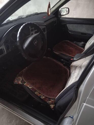 - Салон: тканевая обивка, передние сиденья с накидками, рулевое колесо с чехлом, защитный коврик/накладка на торпедо, передние электростеклоподъемники (по дверным картам/кнопкам), центральная консоль с штатной панелью.
