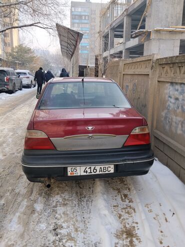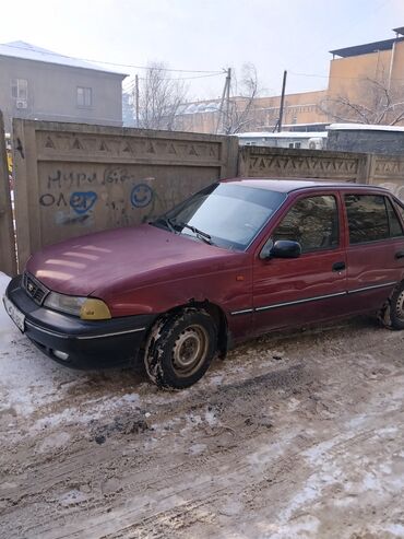 Daewoo Nexia, седан, бордовый цвет. Киргизские номера. Основные характеристики: - Кузов: 4-дверный седан - Привод: передний - МКПП - Двигатель бензиновый - Фары ближнего/дальнего света и противоту...