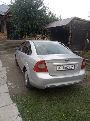 Практичный и экономичный городской седан с удобным салоном и большим багажником. Подходит для ежедневных поездок и трассы.Ford Focus седан, серебристый цвет, киргизские номера (KG, регион 06). Кузов с обновлённой передней оптикой и противотуманными фарами, штатные колёсные диски, антенна на крыше.