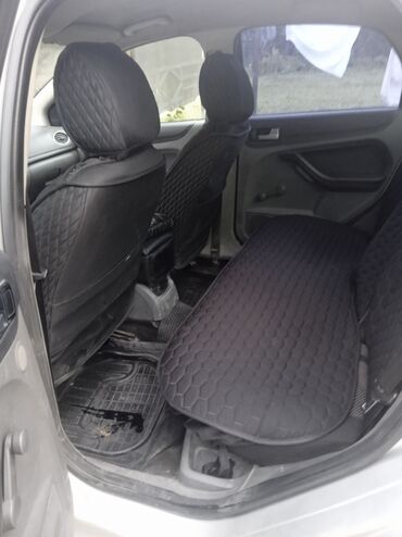 ИнтерьFord Focus седан, серебристый цвет, киргизские номера (KG, регион 06). Кузов с обновлённой передней оптикой и противотуманными фарами, штатные колёсные диски, антенна на крыше.