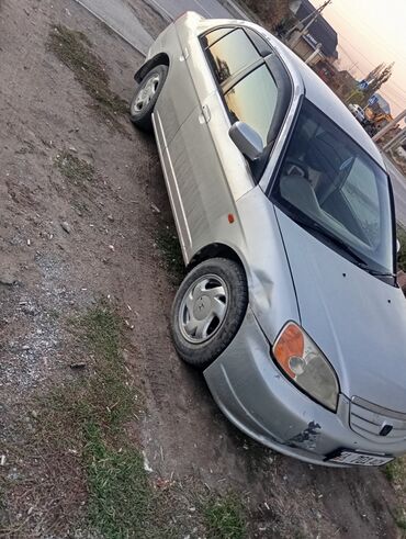 Honda Civic седан (примерно 2001–2003 г.в.), серебристый цвет. Основные характеристики: - Кузов: 4-дверный седан. - Двигатель: бензиновый рядный 4-цилиндровый. - Трансмиссия: автомат. - Привод: пе...