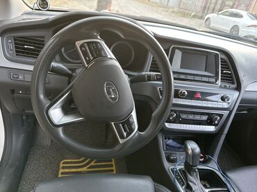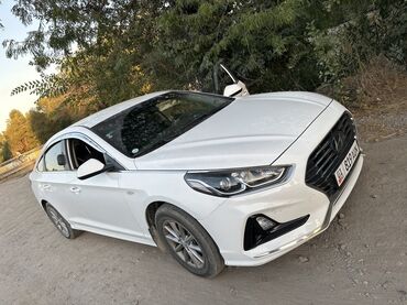 Белый седан Hyundai Sonata с элегантным дизайном, четырьмя дверями и просторным салоном. Автомобиль оснащен стильными литыми дисками и хромированной решеткой радиатора, что придает ему современный вид. Задние сиденья выполнены из черной кожи и имеют интегрированные подголовники, обеспечивающие комфорт пассажиров. Идеально подходит для ежедневных поездок и комфортных путешествий.