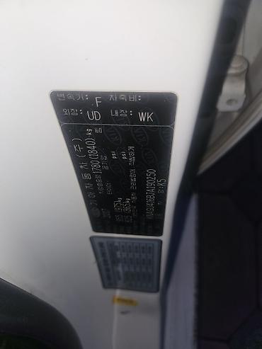 Kia K5 (Optima) седан, белый цвет, кузов UD, салон WK. Номер модели указан на заводской табличке на стойке двери.