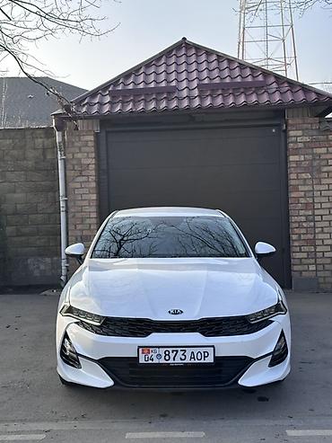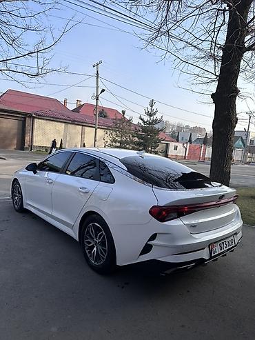 Kia K5 седан, белый цвет, современный динамичный дизайн.