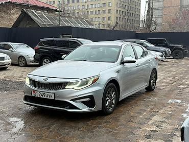 Kia Optima, серебристый седан (рестайлинг). Кыргызские номера KG 01.