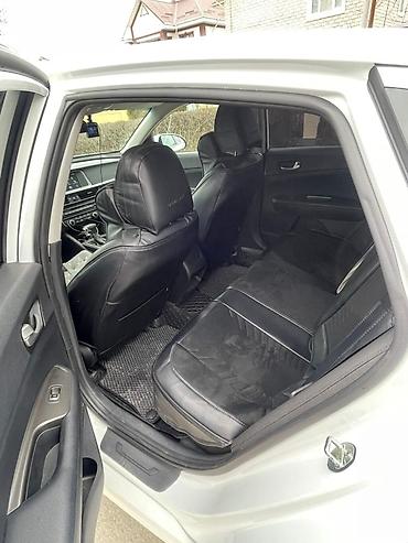 Kia Optima, белый седан бизнес-класса. Основные характеристики: - Тип кузова: 4-дверный седан - Привод: передний - Коробка передач: автомат - Двигатель: бензиновый - Экстерьер: белый цвет, фирменн...