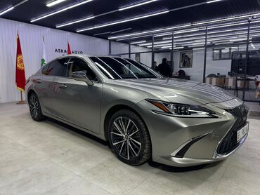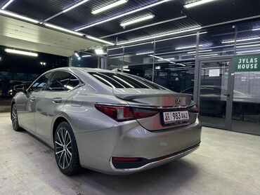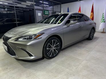 Lexus ES —гибрит, представительский седан бизнес‑класса в серебристом цвете.