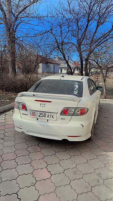 Mazda атенза, 2003 года, объем 2.3. Белый цвет, правый руль. Спортивный обвес по кругу: передний и задний спойлер‑лифты, боковые накладки, расширители на заднем бампере. Литые многоспицевые диски,...