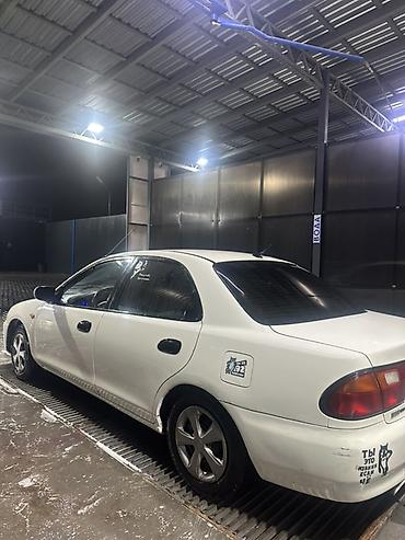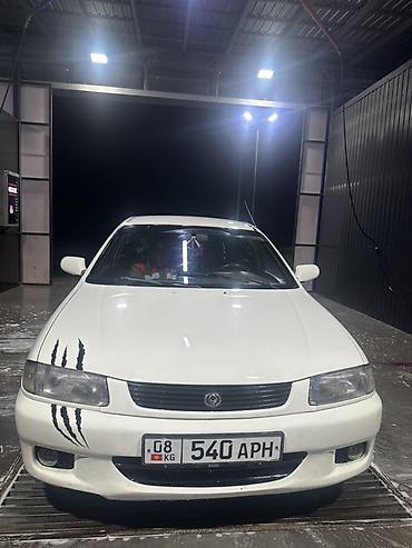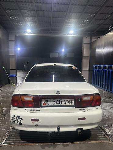 Белый седан Mazda 323 (серия BA, середина/конец 1990‑х). 4 двери, передний привод. Номерные знаки KG (Кыргызстан), регион G8.