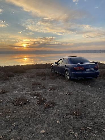 Mazda 6 седан, синий металлик - Кузов: 4‑дверный седан, синий цвет, тонированные стекла, штатная оптика, фирменная эмблема Mazda, передний бампер со спойлером. Легкосплавные диски. - Салон: светлы...