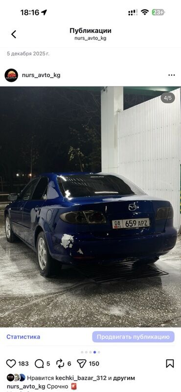 🛑🛑 СРОЧНО!!! Mazda 6, черный седан (второе поколение, рестайлинг). Кыргызские номера 05 KG 138 ACL. Основные особенности: - Кузов: 4-дверный седан, черный цвет, двухтрубный выхлоп, тонированные ст...