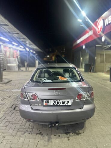 Mazda 6 седан, серый цвет, кыргызская регистрация (номер 529 AEB, регион 09 KG). Кузов и экстерьер: - Классический дизайн первого поколения Mazda 6 - Заводская оптика спереди и сзади - Легкосплавн...