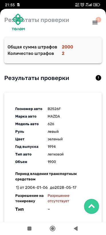Mazda 626 седан продаю на запчасти состояние машина не на ходу. и потеряли техпаспорт ...цена 60.000мин сом кому интересно звоните