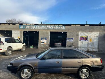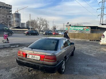 Mazda 626 седан (поколение GE, ориентировочно середина 1990‑х). Мазданы ээсине берем 1992 ж көлөмү 2куб бензин азыркы учурда жүрөт.Жасачу жерлери ходовой майда Чүйдө иштери бар Основные характерис...