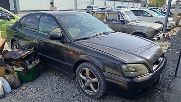 Седан Subaru Legacy (поколение конца 90‑х – начала 2000‑х), черный цвет кузова.