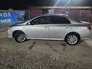 Toyota Corolla седан (поколение E140/E150), тёмно‑серый цвет кузова. Киргизские номера. Особенности и комплектация, видимые на фото: - Кузов седан, 4 двери - Легкосплавные диски - Галогенные фары ...