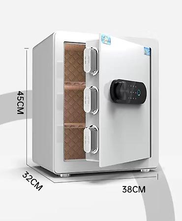 Сейф с биометрическим доступом и кодовой панелью, поддерживает аварийный ключ. Подключается к приложению Tuya для удалённого управления и уведомлений. Характеристики: - Размеры: высота 45 см, шири...