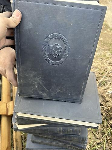 - Комплект многотомного издания в твердых темно-синих переплетах с тисненым эмблемным орнаментом на верхней крышке.
