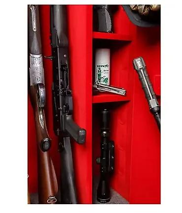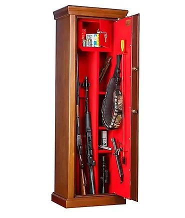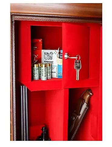 Особенности: оборудован патронным отделением, запирающимся на ключ (трейзером), полками и ложементами для ружей; на двери изнутри есть специальная гребёнка для шомполов и рамка для ножей;
