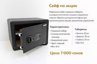 Сейфы для дома и офиса — широкий выбор моделей цены от 3300 сомов и выше - Типы: компактные настольные, шкафы-сейфы, огне- и взломостойкие напольные модели. - Запирание: электронные кодовые панел...