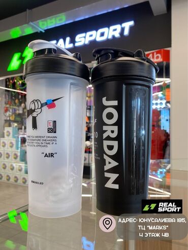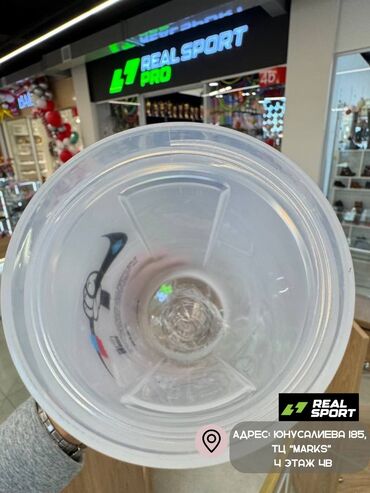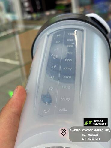Шейкер сделан из пищевого пластика, не имеет запаха, объем 1л.