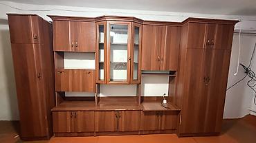 Секционная стенка для гостиной из ЛДСП под тёмное дерево. Состав и
