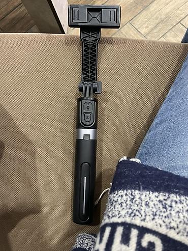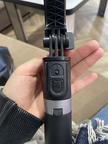 - 2-в-1: телескопическая селфи‑палка с раскладным настольным штативом на трех ножках.