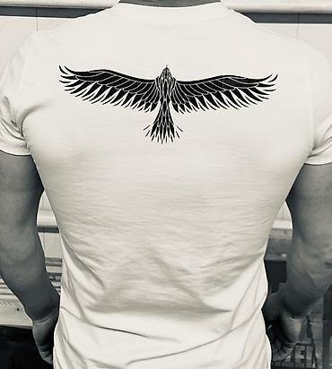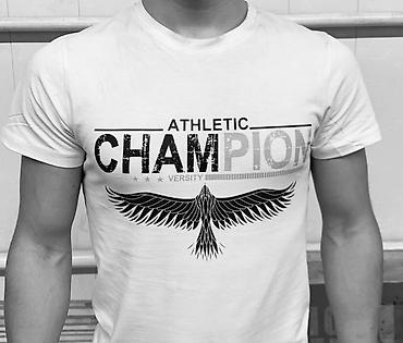 - надписи и спортивная графика (пример: “ATHLETIC CHAMPION” с орлом спереди и крупным орлом на спине);