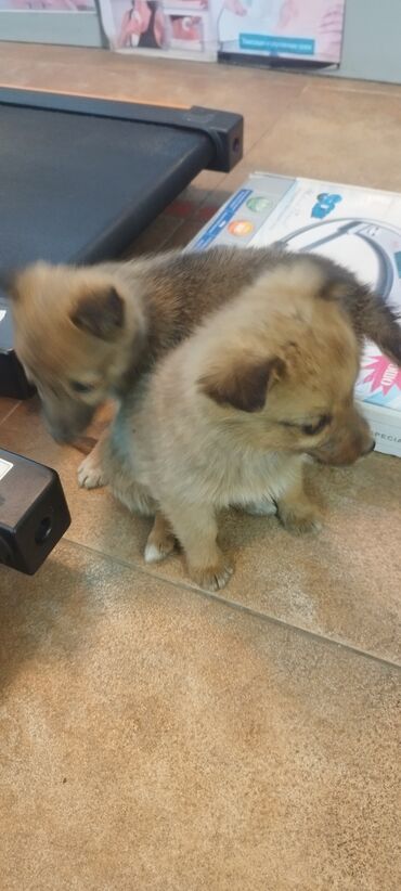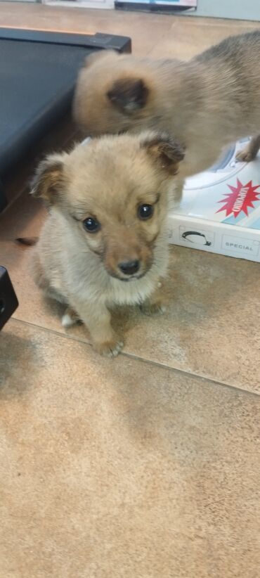 Щенки смешанных пород - Возраст: на фото — маленькие щенки, примерно 1–2 месяца. - Окрас: светло-рыжий/песочный с темной маской на морде; есть более светлый щенок кремового оттенка. - Тип шерсти: ...