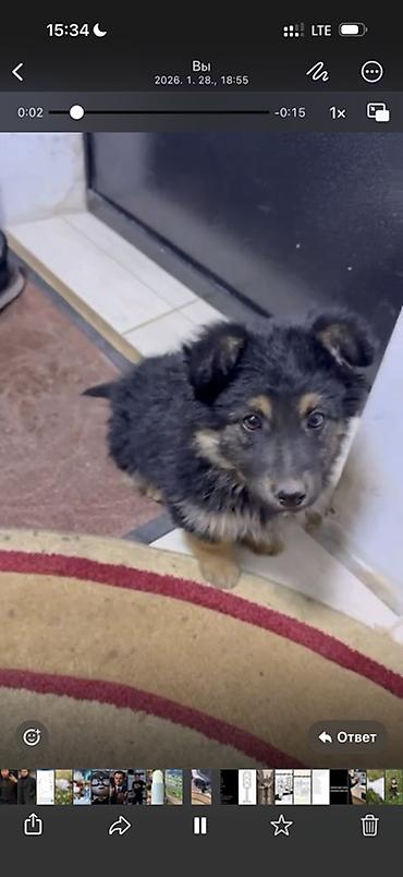Щенок, похожий на метиса овчарки/лайки: пушистая густая шерсть черного цвета с подпалом на мордочке, груди и лапах, небольшие стоячие ушки, выразительные темные глаза. Компактный, активный, любопытный, реагирует на голос и игрушку, хорошо идет на контакт. Подходит для дома и двора: обещает быть внимательным компаньоном и сторожем. Неприхотлив в уходе, шерсть средней длины, требует регулярного вычесывания. Привыкание к поводку и базовым командам даст быстрый результат — сообразительный и ориентирован на человека. Отличный друг для семьи с детьми и для активных людей.