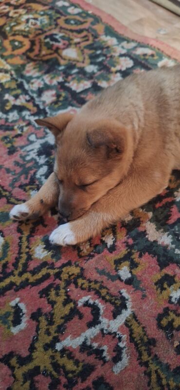 Щенки смешанных пород - Возраст: на фото — маленькие щенки, примерно 1–2 месяца. - Окрас: светло-рыжий/песочный с темной маской на морде; есть более светлый щенок кремового оттенка. - Тип шерсти: ...