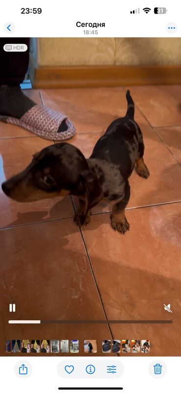 Щенок таксы, окрас мрамор (черно-подпалый с серебристыми пятнами)