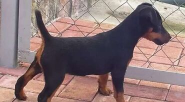 - Короткая гладкая шерсть: черная с рыжими подпалинами на морде, груди и лапах