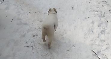 Щенок крупной породы, белого окраса. Плотный костяк, широкая грудь, мощные лапы, короткая плотная шерсть. Голова крупная, выраженная морда, тёмная мочка носа, уши купированные. Активный, любознател...