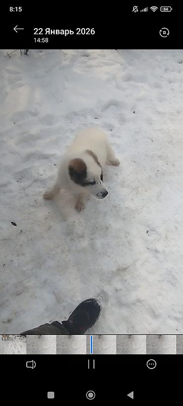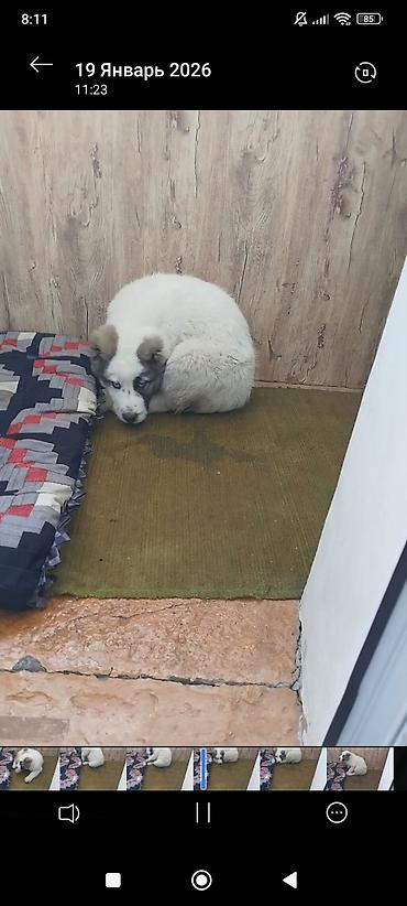 Щенок (девочка), предположительно породы среднеазиатская овчарка (алабай). Описание: - Возраст: маленький щенок (по фото — несколько недель). - Окрас: бело-рыжий, с белой маской на морде и рыжими ...