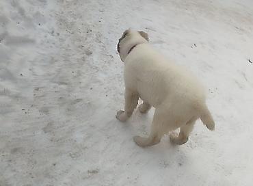 Щенок крупной породы, алабая 3 недели - Окрас: белый с серо-палевыми пятнами на морде и ушке, розовый нос с темной отметиной. - Плотный костяк, широкие лапы, массивная голова. - Шерсть густая, м...