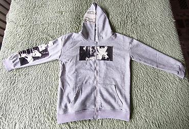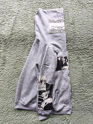 Серая худи на молнии с капюшоном и принтами