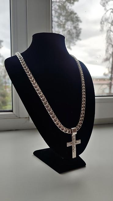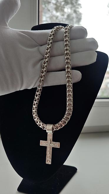 Серебряная цепочка с крестиком. Цепочка выполнена в плетении «Рамзес», что придает ей прочность и интересный внешний вид. Крестик с распятием, детализированный, подходит как для мужчин, так и для женщин. Может использоваться как повседневное украшение или для особых случаев. Цена 210 сом за грамм