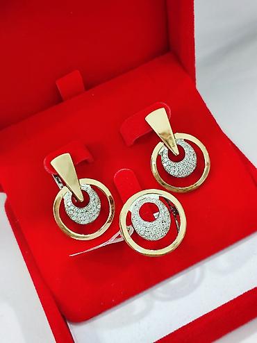 кумуш , серебро , комплект , набор , кольцо , серьги , серебро с золотом , напыление золото , Италия