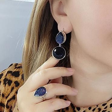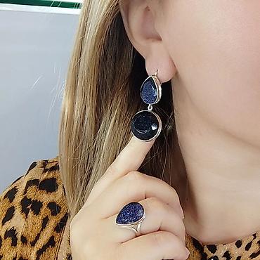 Ювелирный набор с синими камнями Серебро 925 пробы Состав: - Подвеска