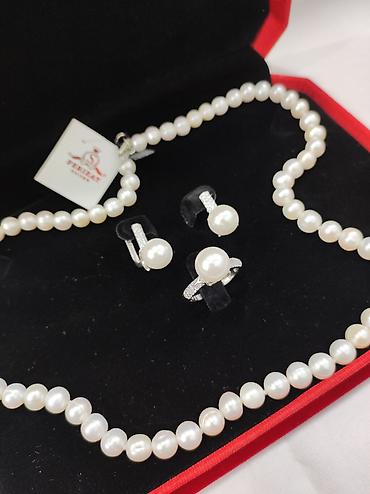 Серебряный Набор + Бусы Жемчуг