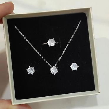 Серебряный Набор 925 пробы Размеры имеются Цена 5000 сом Можете