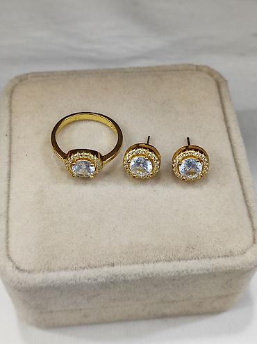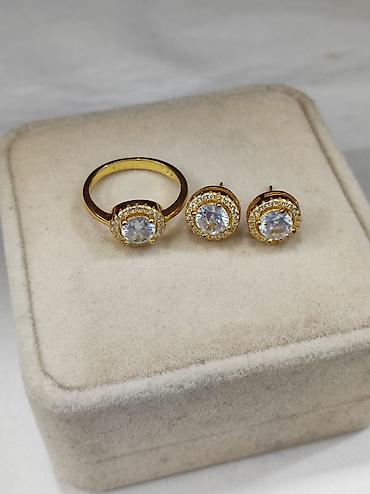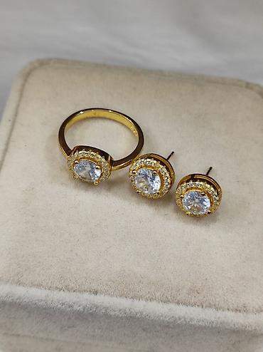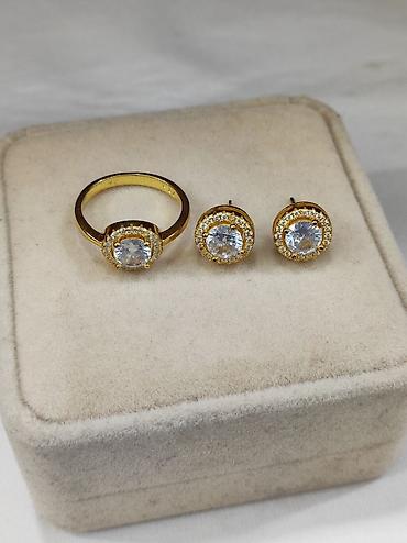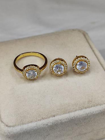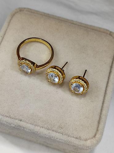 серебро , кумуш , напыление жёлтое золото , с золотом ,под Италия , серьги , кольцо , Набор , комплект , гвоздики