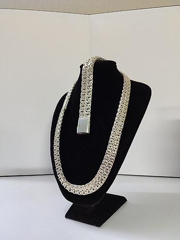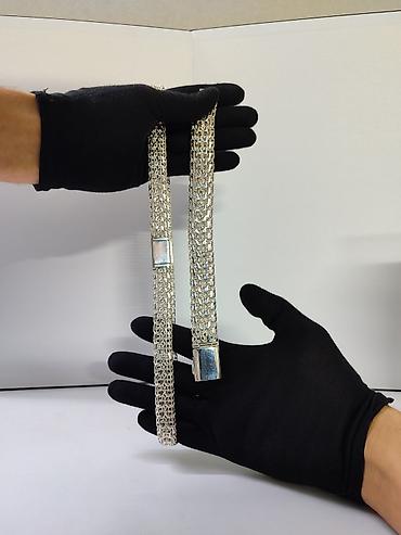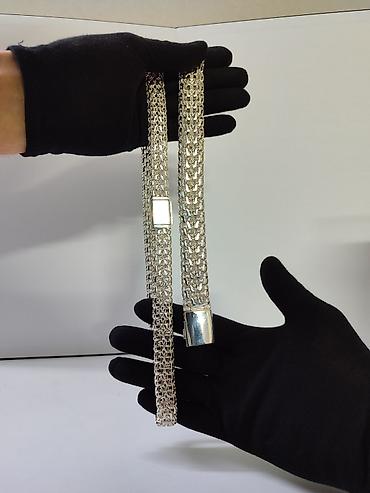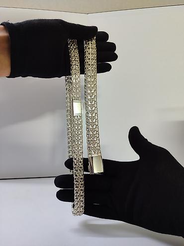 Серебристая массивная цепь-пояс/ожерелье с широким плетением.