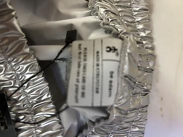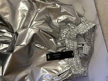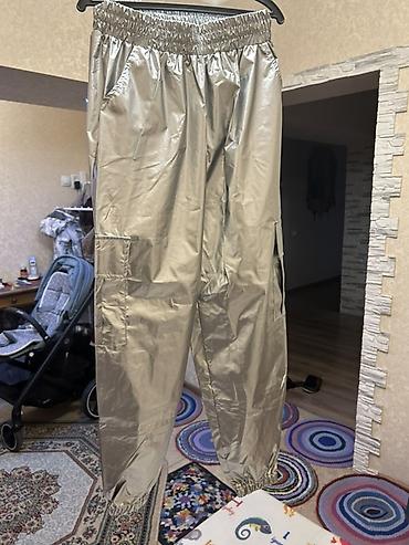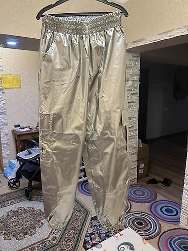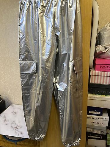 Серебристые брюки-джоггеры с металлизированным блеском. - Материал
