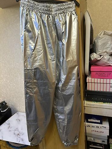 Серебристые брюки-джоггеры с металлизированным блеском.