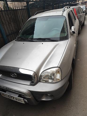 Hyundai Santa Fe, серебристый кроссовер (первое поколение, дорестайлинг/рестайлинг начала 2000‑х). Имеется камера заднего вида,обогрев сидений ,люк.В багажнике 2 дополнительных сидений