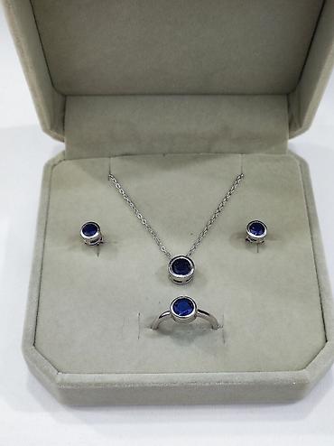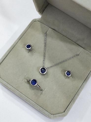 Ювелирный набор с синими камнями Серебро 925 пробы Состав: - Подвеска