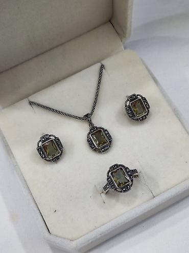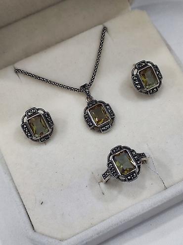 Серебряный Набор 925 пробы Размеры имеются Цена 5000 сом Можете